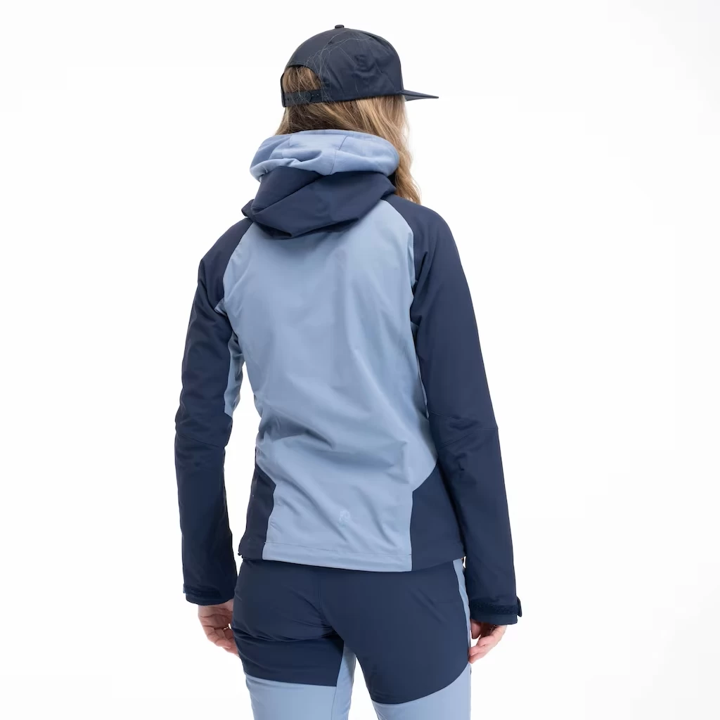 Combines two different softshell materials with 4-way stretch. Wind- and water-repellent softshell material with PFAS-free WR impregnation in exposed areas and lighter material on the back as well as under the armpits provide better breathability. Low weight and minimal pack volume. The product contains bluesign® approved fabrics and trimmings.