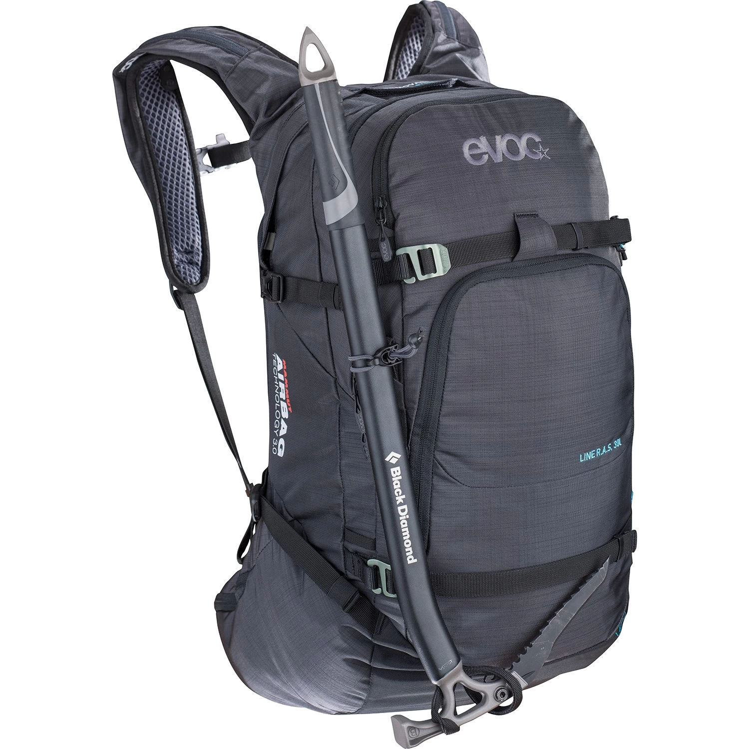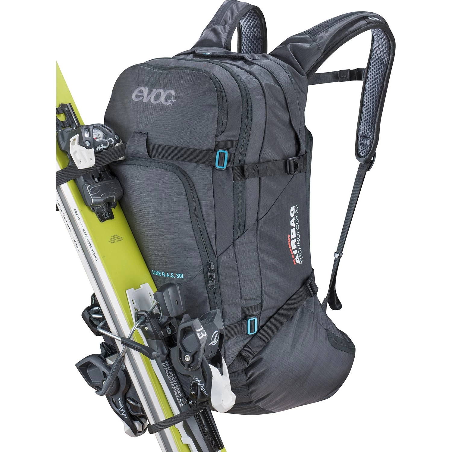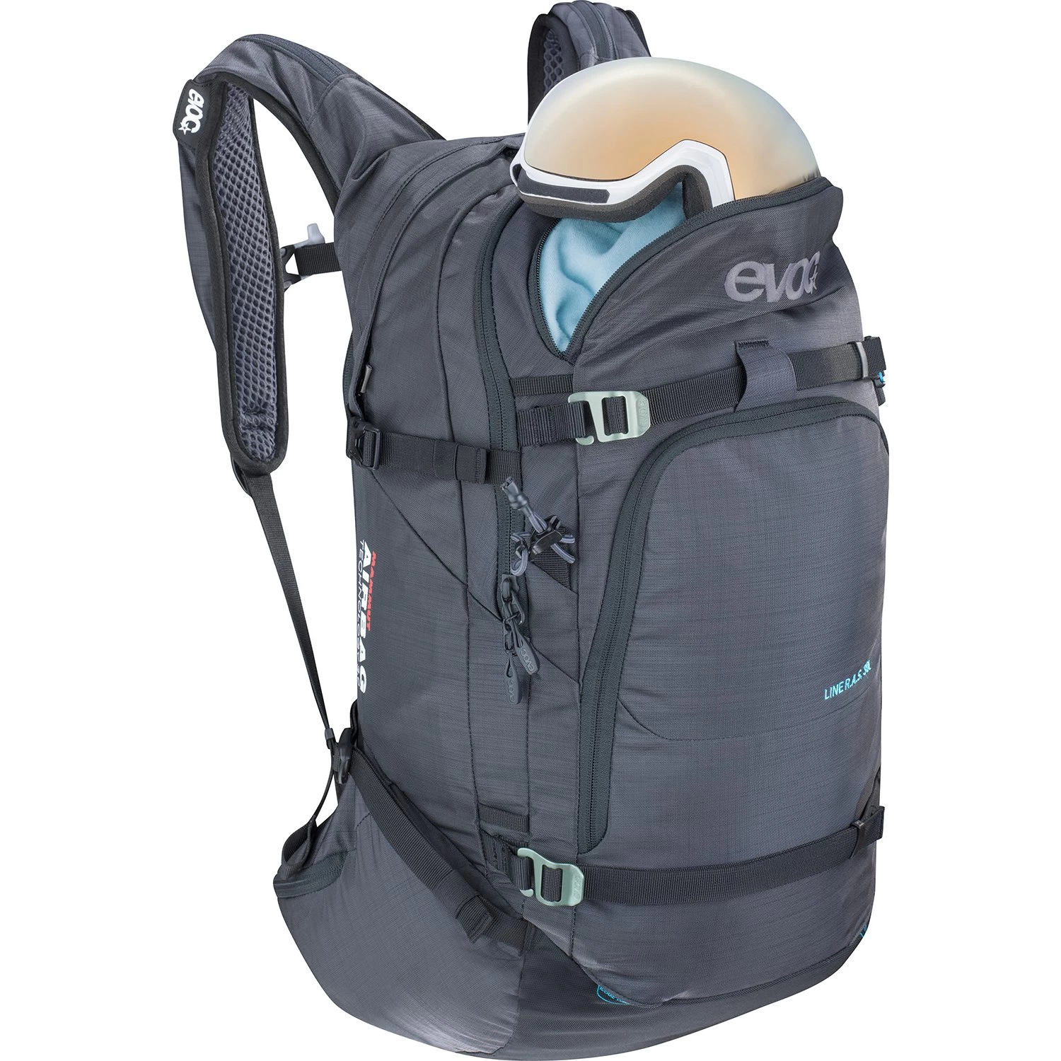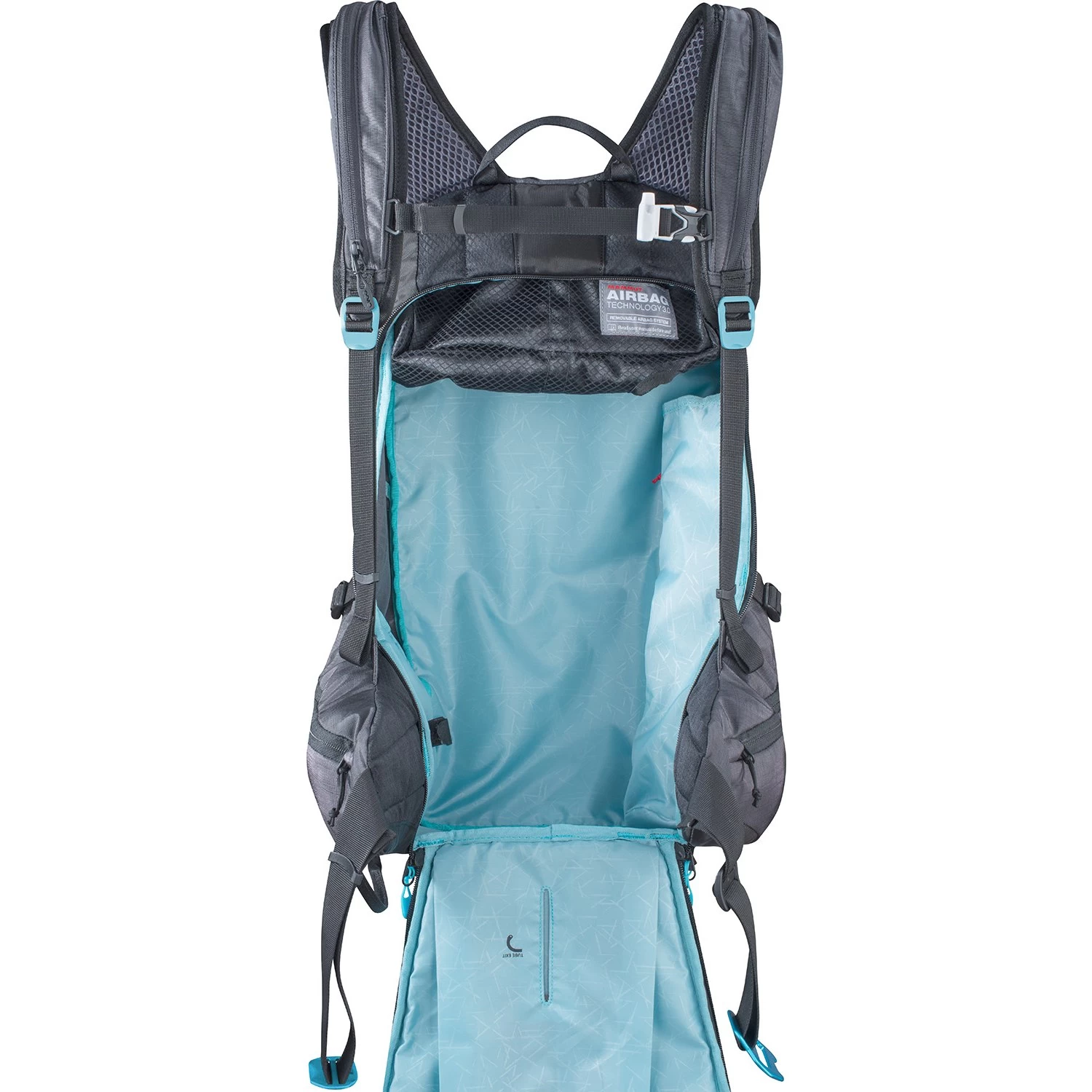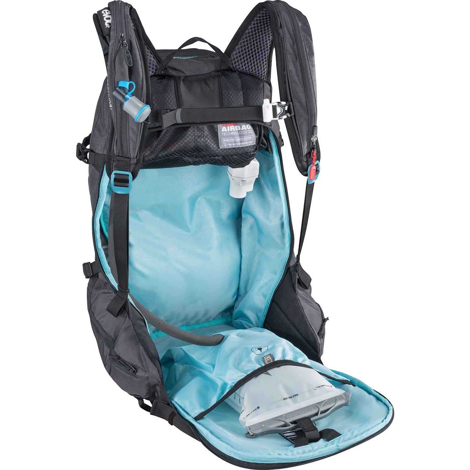 Removable Airbag System 3.0: In the event of an avalanche, pull the deployment handle to inflate the avalanche airbag. This increases the chance to stay on the surface of the snow. By incorporating MAMMUT’s Airbag Technology 3.0, you now have a pack that combines EVOC’s outstanding standard in pack design with one of the lightest and most flexible airbag systems.