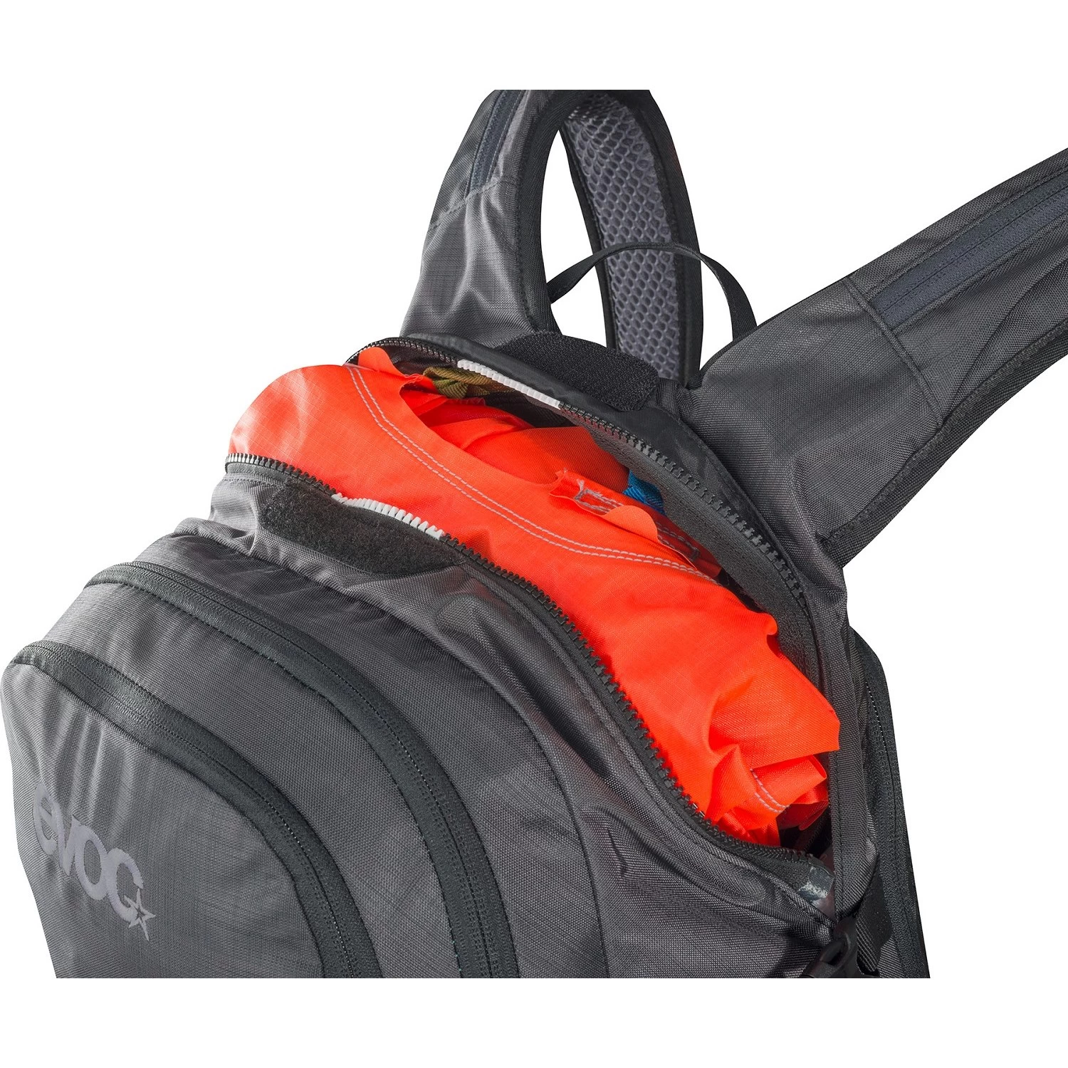 The distinguishing feature of EVOC´s “Body Hugging” fit is that the backpack’s centre of gravity is positioned as close to the body as possible, and the load is distributed over a large area and transferred to the hips. Optimised linking of the shoulder straps and the wide hip wings that “grow out” of the back part ensure that the backpack remains firmly in position during any kind of activity – for more comfort and control.