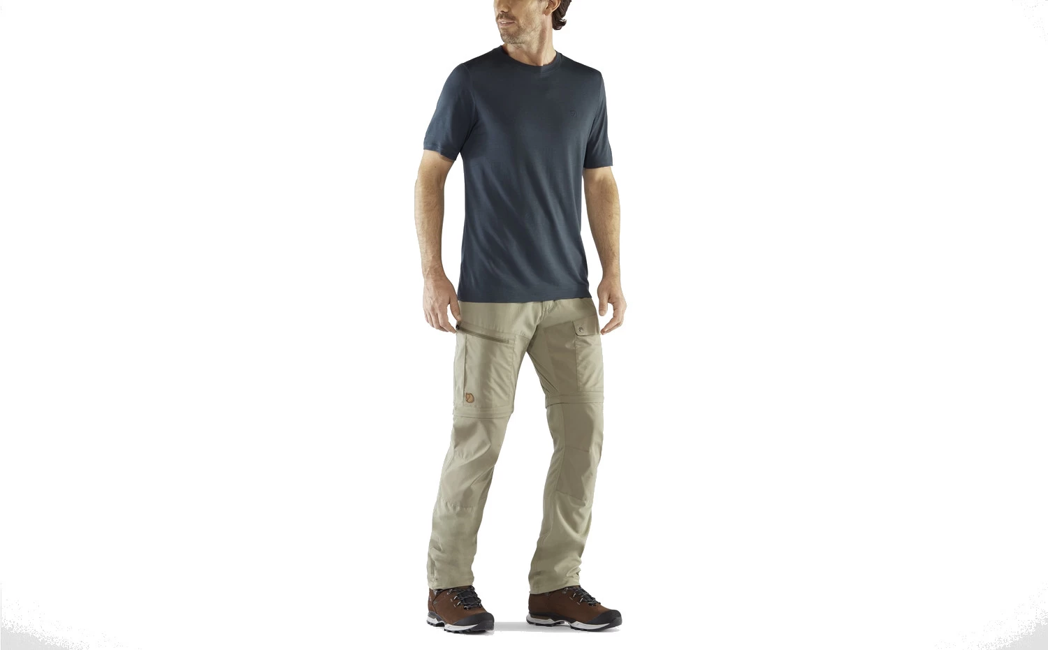 The award-winning Abisko Midsummer Trousers, here with zip-off function. Made from G-1000 Air Stretch in organic cotton and partially recycled polyester, and snug stretch fabric, also made from partially recycled polyester. Both materials are quick drying and allow excellent air circulation. Perfect for hiking and traveling where you need both pants and shorts to protect you from a wide variety of conditions such as sun, rough terrain or insects.