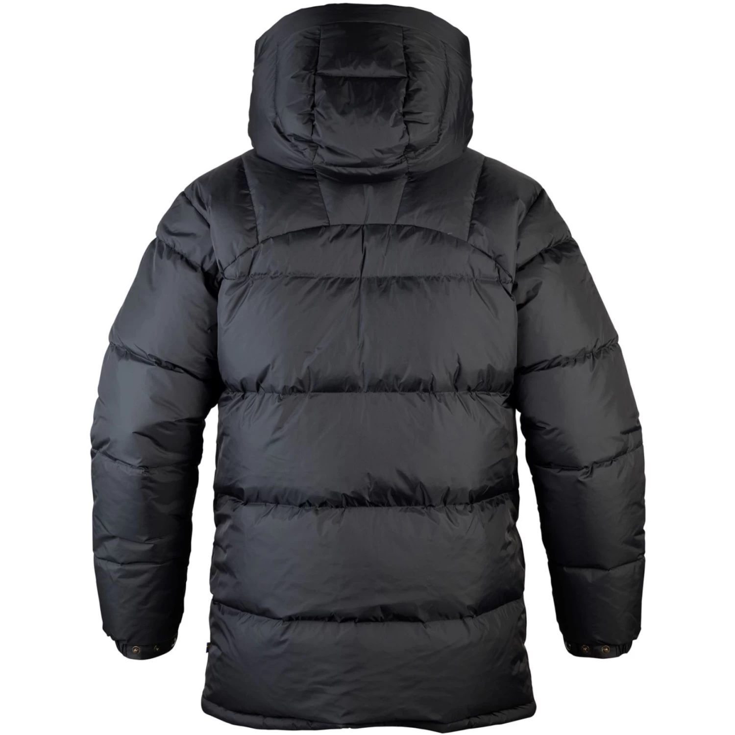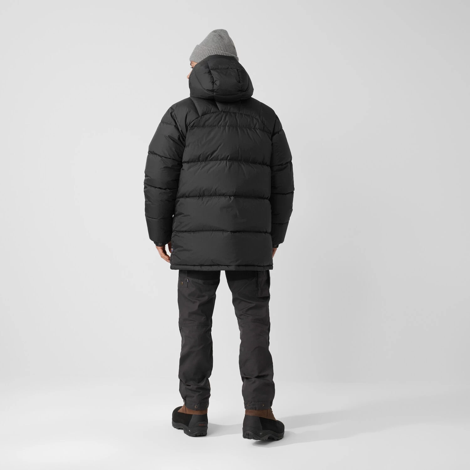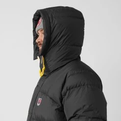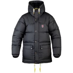 A popular Fjällräven classic from 1974, here with a modernized fit for men. Warm hood and generous pockets with extra side pockets to warm up your hands. Durable outer material with PFC-free impregnation. Filled with ethically sourced down. Offset down channels prevent heat loss. Reinforced with synthetic fiber fill at shoulders. Adjustable hood. Classic yellow drawstrings and leather details. Two-way zipper with wind flap and snaps. Two flap pockets accessible from the top. The pockets have an additional side entry. Interior storage pocket with zipper. Drawcord waistband and hem. Elasticated cuffs with press studs.