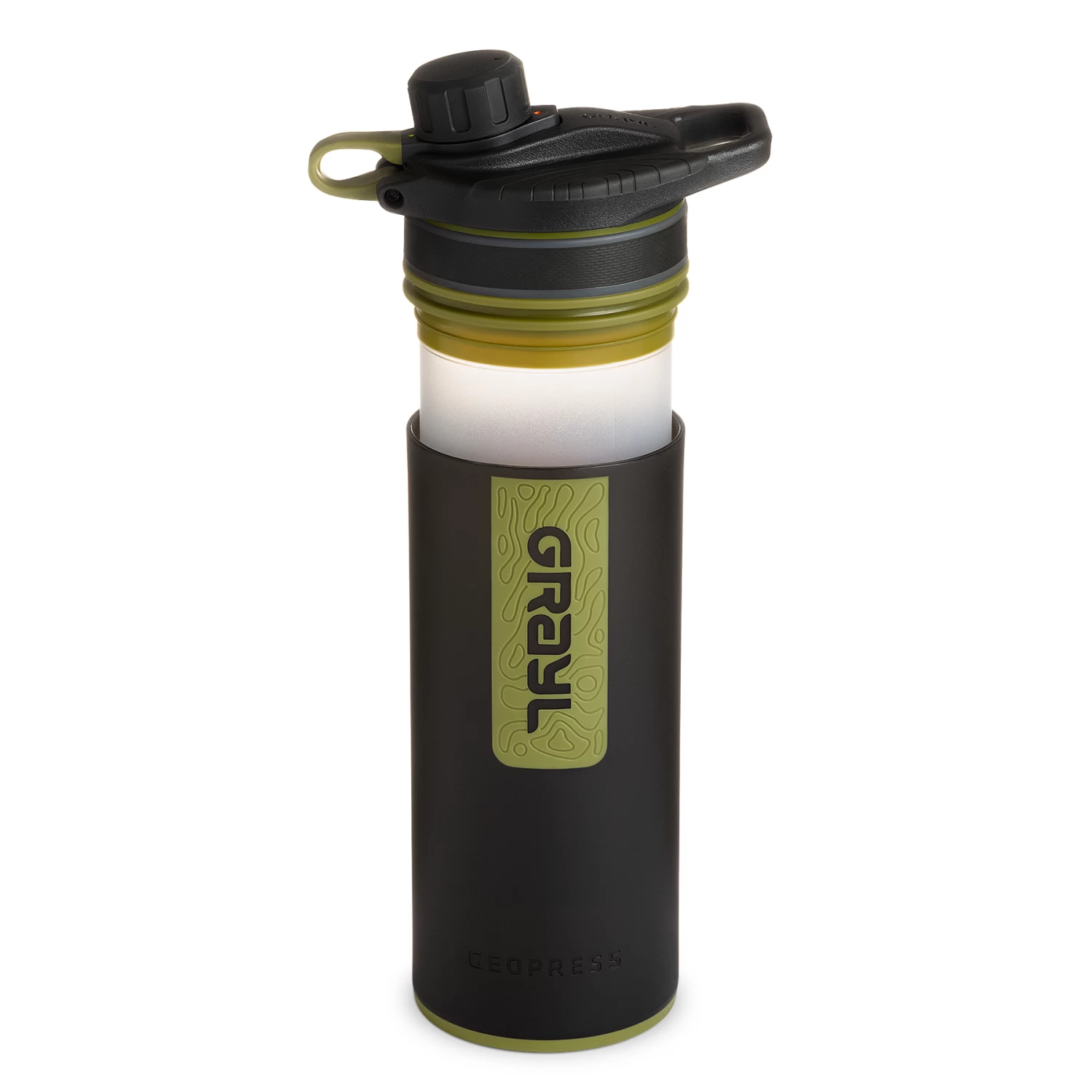 Specifications of the Grayl GeoPress water bottle with water filter.