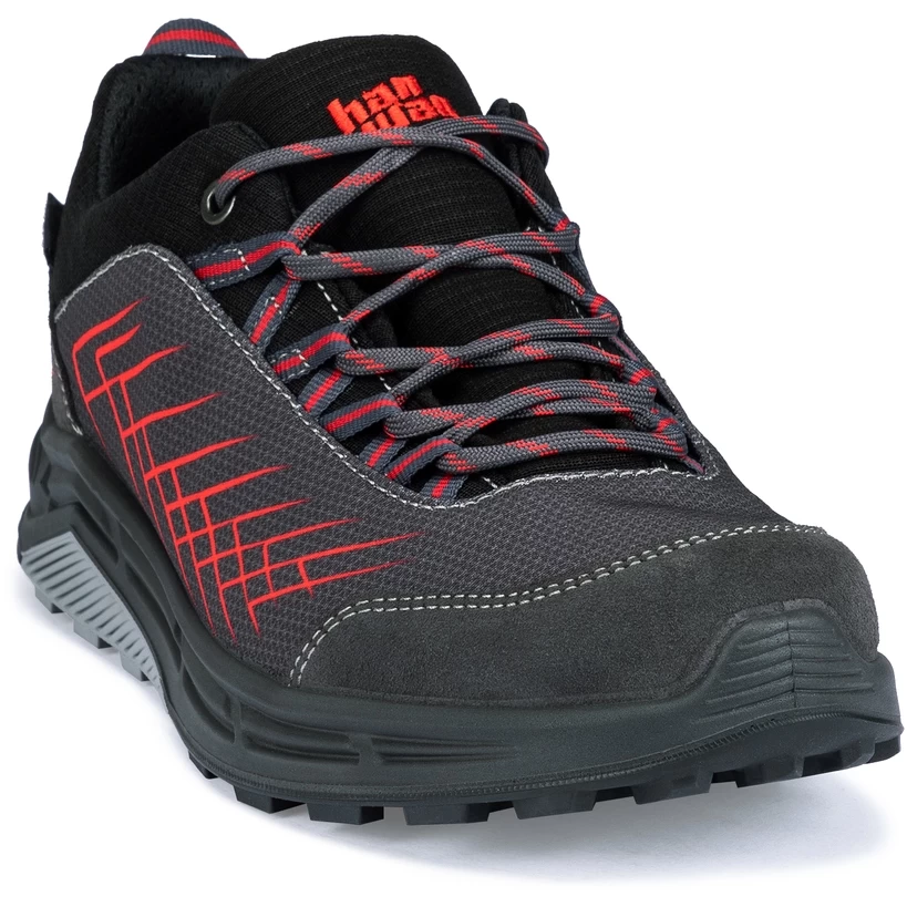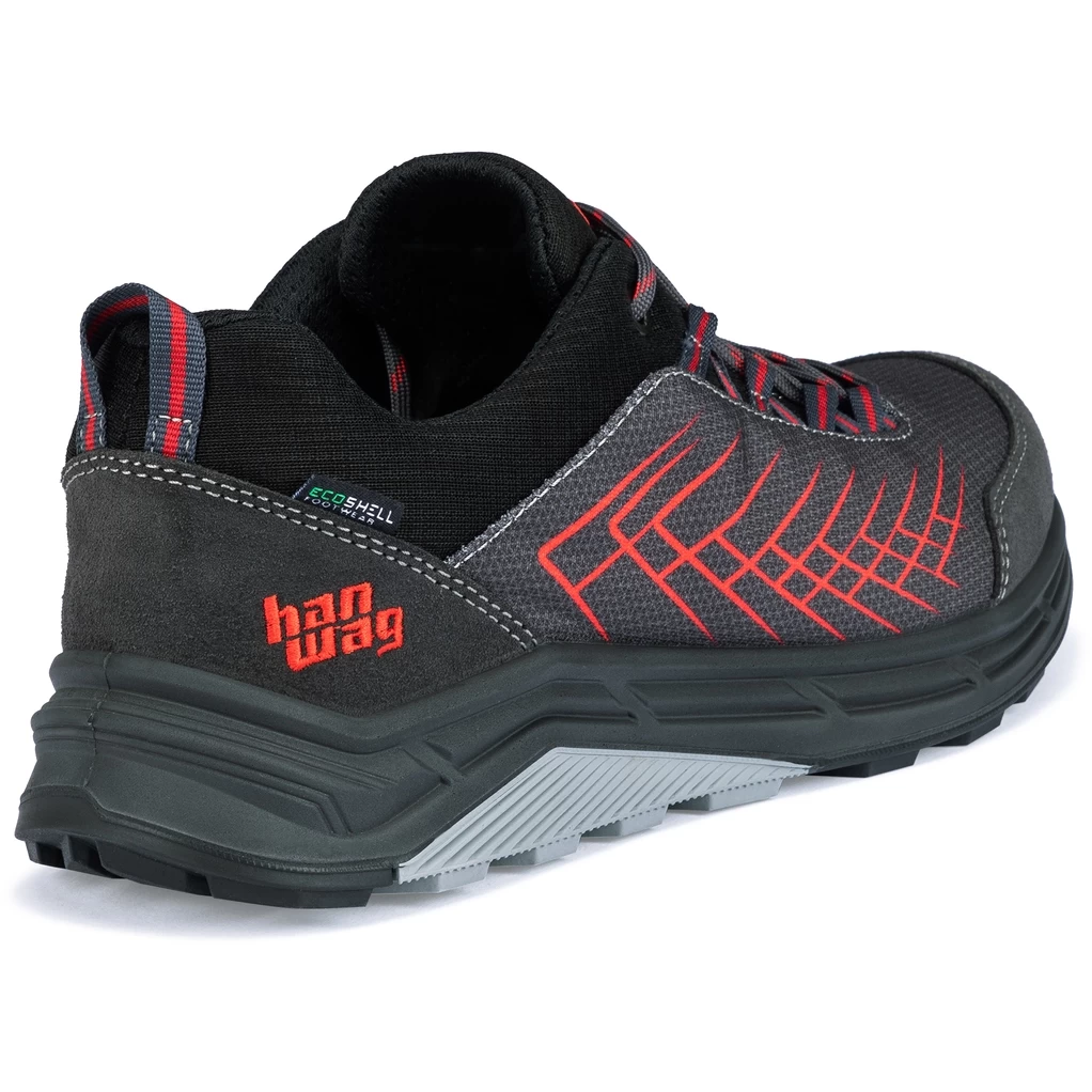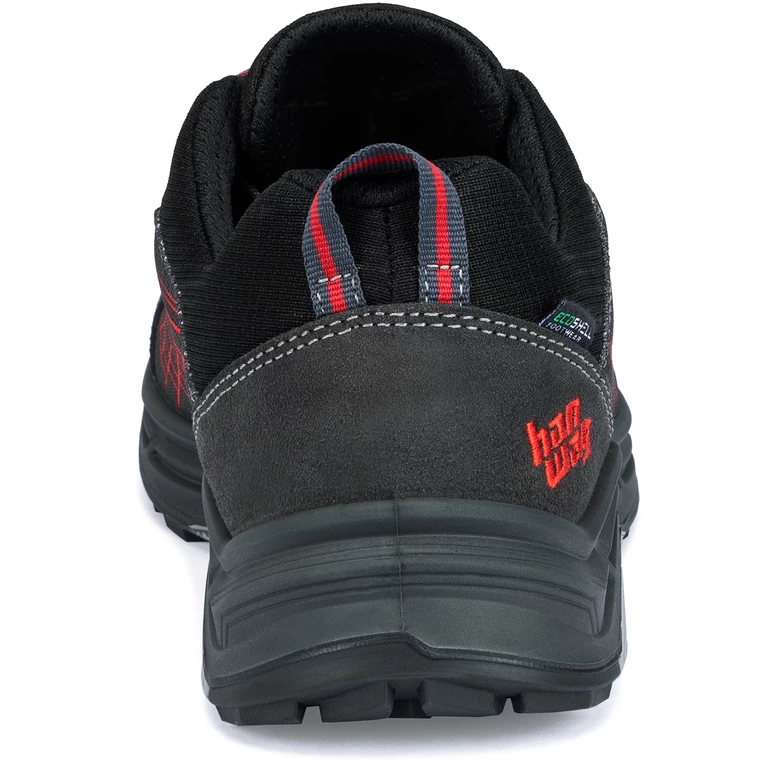 Sporty design, low weight and sustainable materials: The lightweight multifunctional shoe with sporty design feels at home on flat terrain and paved trails. Thanks to the waterproof and completely PFC-free EcoShell membrane, the feet reach their destination dry and sustainable. The HANWAG „Hike Light“ sole without heel is very light and ensures a harmonious rolling of the foot.