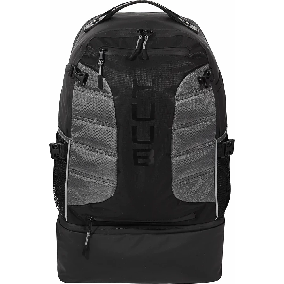 The Transition Three Bag by HUUB is a backpack for everything, whether it’s race day or training day, in the pool or on the track, the TT’s huge 40 liter capacity can handle it all. It features a hidden mesh helmet holder that zippers closed when not in use, so your helmet is always in safe hands no matter where you go. With wet and dry compartments, you can be sure your dry gear is always at hand, while wet gear is safely stored in the waterproof compartment at the bottom of the bag. Expandable side pockets are ideal for beverage bottles. There’s also a handy zippered pocket on the front for quick access, ideal for electronics, keys, phone, etc. The padded, adjustable shoulder straps provide optimal comfort. The chest strap helps distribute the weight.