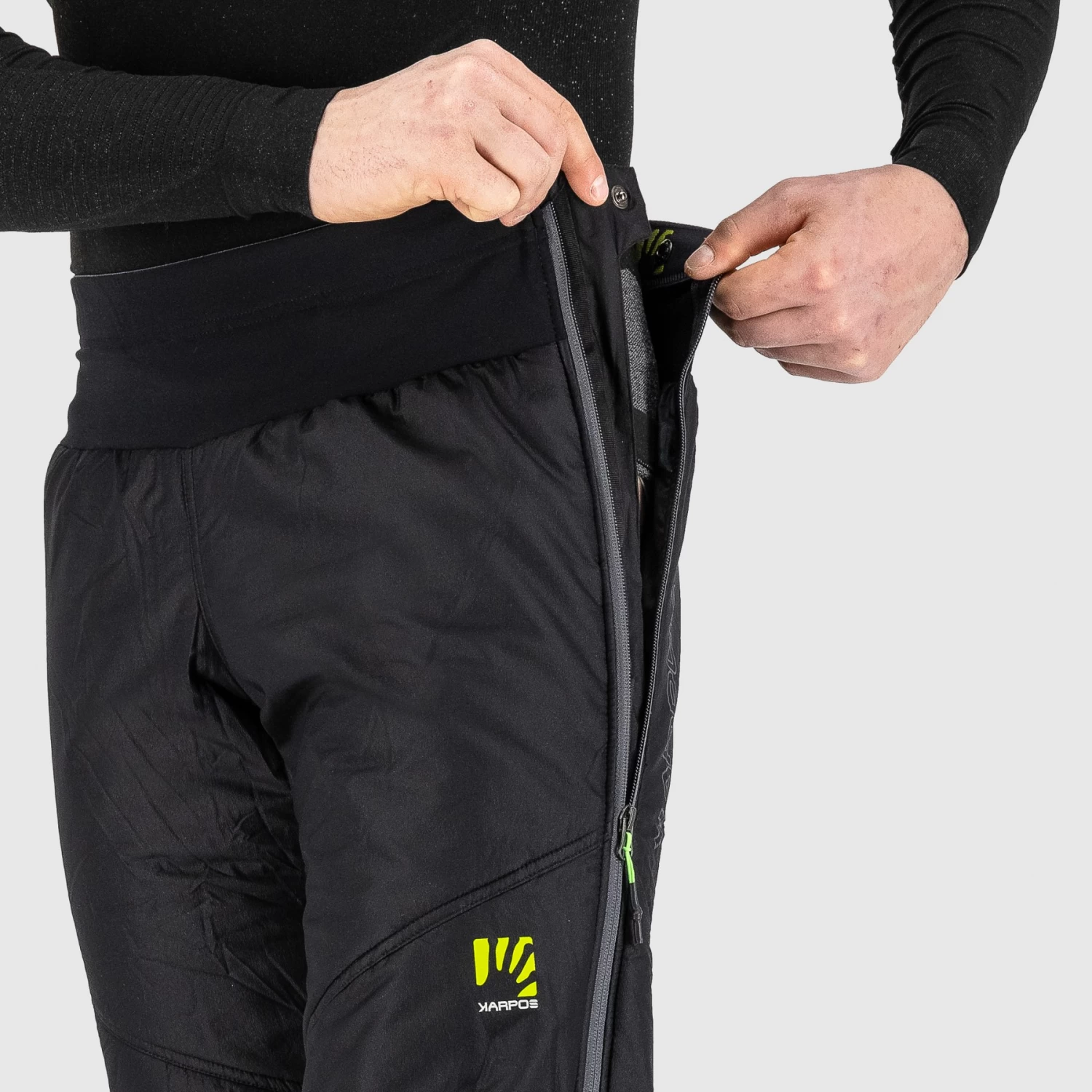 The Lyskamm Evo Pants are the result of years of development and testing with KARPOS top athletes. It offers the perfect combination of thermal protection, lightweight, breathability and compact pack size. You can wear these pants early in the morning when it’s cold, and take them off as soon as the temperature rises a little or when you’re climbing fast and strenuously. Also ideal as an overpant for ambitious ski mountaineering or as an extra layer to carry in your pack in case you need more protection.