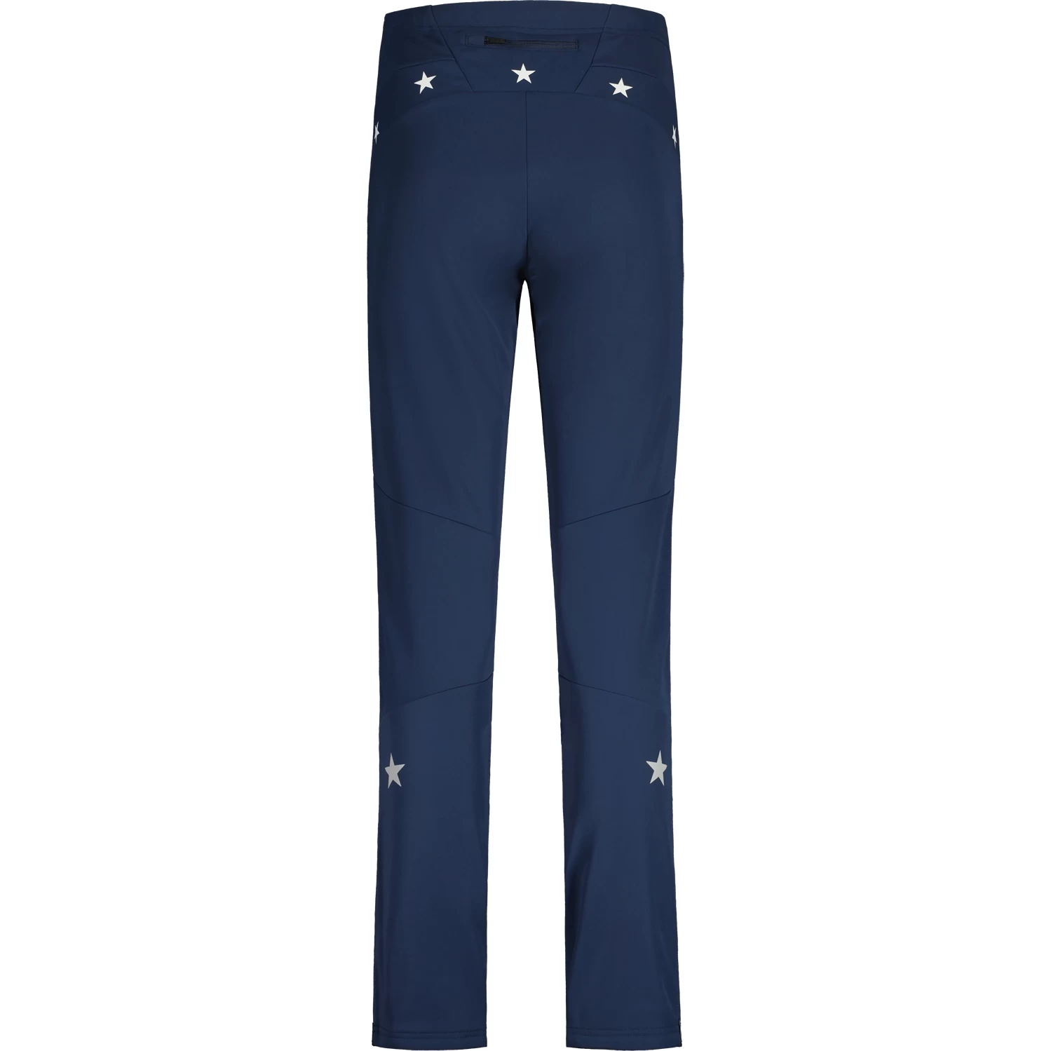 Stormshell material on the front protects against wind, Thermal Stretch Eco on the back provides freedom of movement. At the thigh vents with zippers, side zippers at the leg openings, star design at the hip and legs, reflective details.