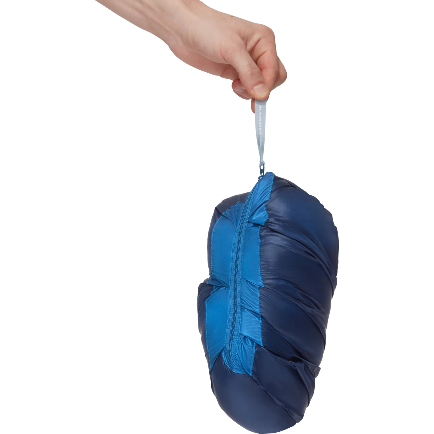 Perfected by mountaineers – after countless kilometers in alpine conditions, the Broad Peak IN Hooded Jacket has earned its place among Mammut’s core pieces. With 800 cuin fill power from responsibly sourced goose down, the jacket will keep you warm all year round. The recycled and abrasion-resistant Pertex® Quantum outer fabric is lightweight, offers maximum thermal performance and keeps moisture out. Backpack and harness-friendly pockets and an elasticized hood make this lightweight down jacket a reliable companion for years to come. Weighing just 330g on the scale and able to stow in its own pocket, you’ll never leave the house without this down jacket again.