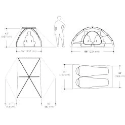 Quick to set up 3-person tent with two doors and storage space for equipment.