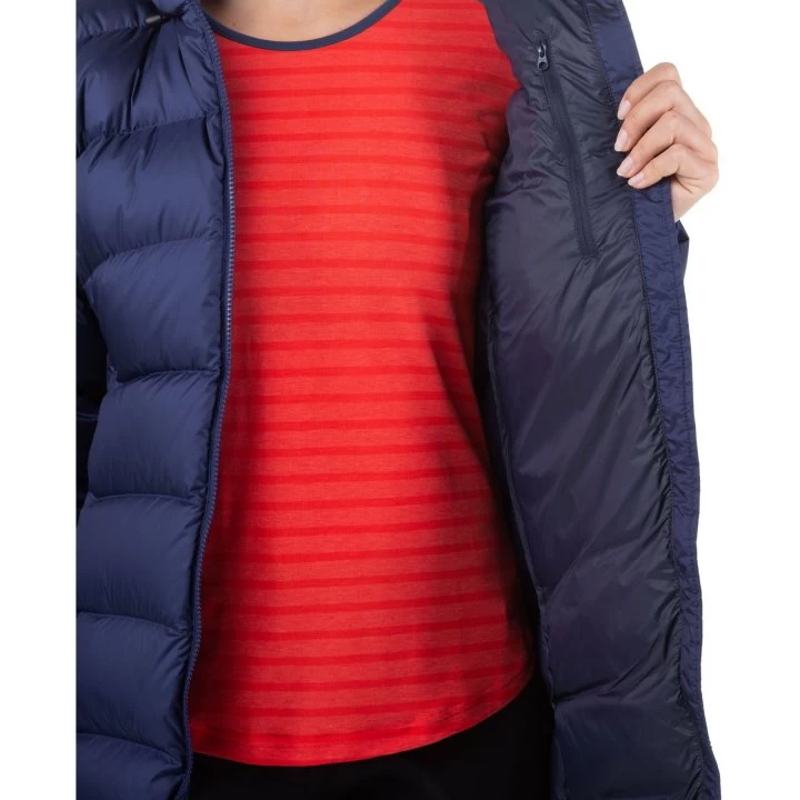 With the longer cut, the filling of high-quality down and the water-repellent outer material, the Lightline Women’s Parka is the first choice for cold winter days. The hood with excellent fit provides additional protection and can be removed if necessary.