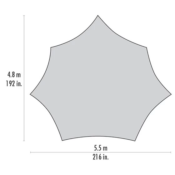 This uniquely designed and extremely stable tent canvas is suitable for any tent site. The creates an 18 m² open area on the tent site with protection from rain, wind and sun and is the ideal additional equipment for groups of two to 12 people.