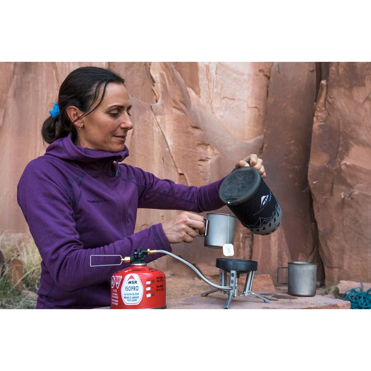 The fits perfectly in the Titanâ„¢ kettle: the ideal set for one person. The optimized design features a foldable wire handle, making the cup easy to carry and store. The cup to eat / drink for drinks or soups holds 400 ml.