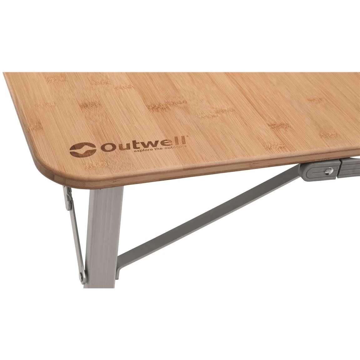 Extremely strong folding table with sturdy aluminium construction and bamboo tabletop.