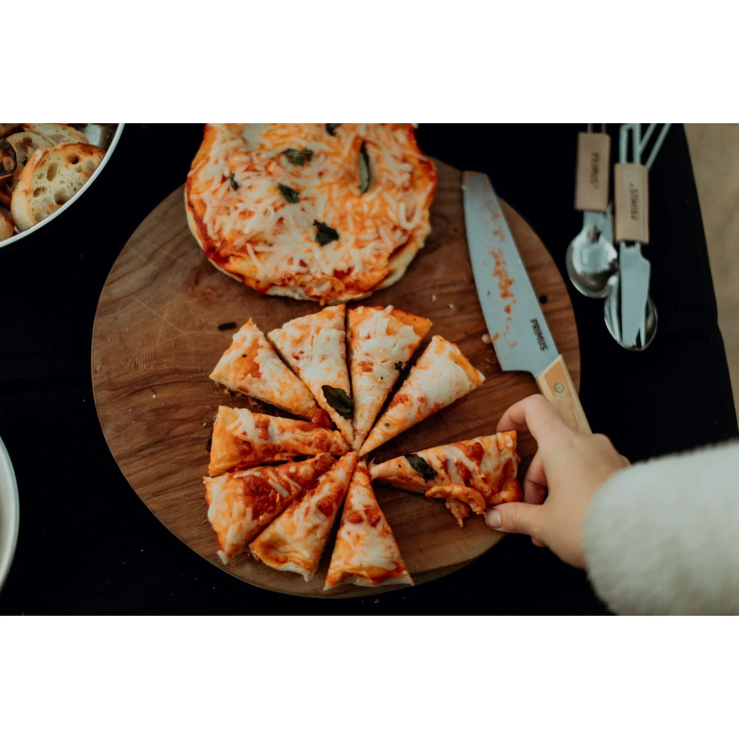 Chef’s knife with flexible stainless steel blade and oak handle. For first-class slicing, mincing and dicing. Thanks to the bendable blade, it is also ideal for filleting.