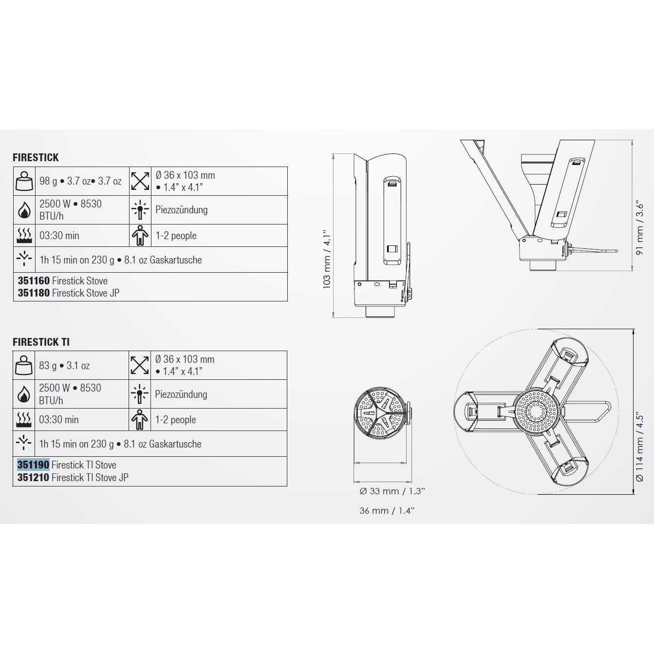The Primus Firestick Stove Ti, much like the Firestick Stoves, is designed to occupy as little space as possible in your gear, without compromising function and quality. The difference is that the Firestick Stove Ti features titanium pot supports, making the stove even lighter. Here as well, the stove incorporates optimal wind protection due to the design of the pot supports and burner. This makes the stove able to stand up to the toughest weather conditions and deliver when it really counts, despite its compact design. The stove is also equipped with Primus’ latest valve which adjusts the flow of gas and ensures that you get optimal output at varying temperatures. The stove includes a tailored wool storage pouch that can also be used as a pot gripper, as well as Primus’ new Piezo igniter which lights the stove with the click of a button so you don’t have to fiddle with a lighter or matches.