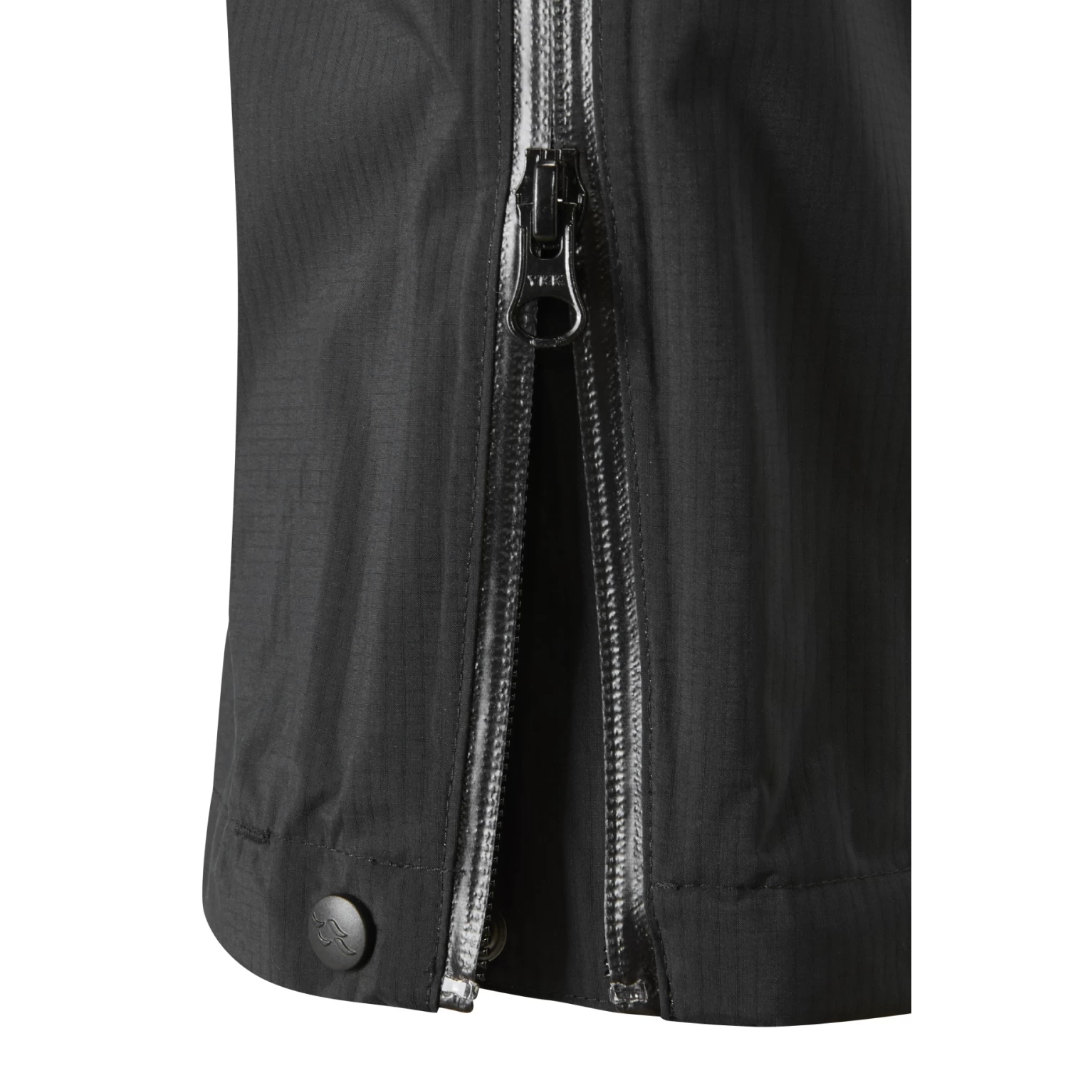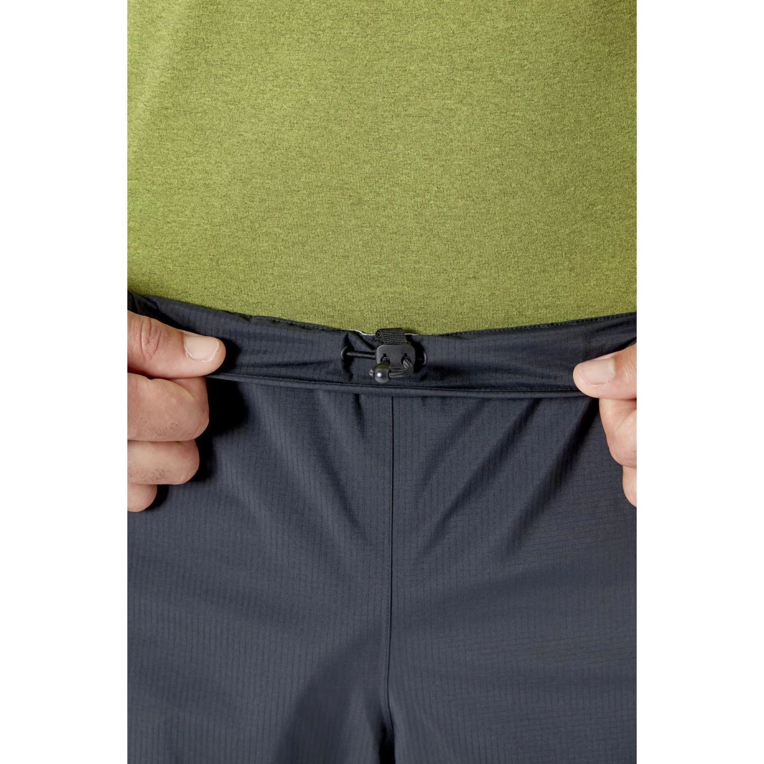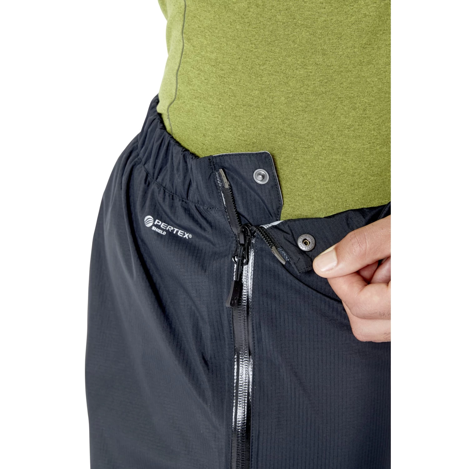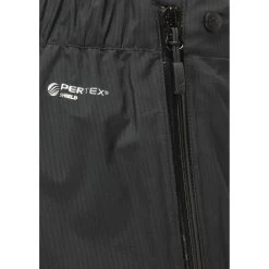 Technically savvy mountain hiking pants with semi-elastic waist and hem adjustable by means of drawstring. The pants ha, full leg side openings and articulation at the knees. Waterproof protection is provided by a Pertex Shield 2.5 layer with a recycled finish.