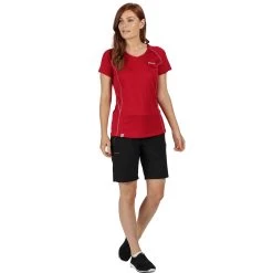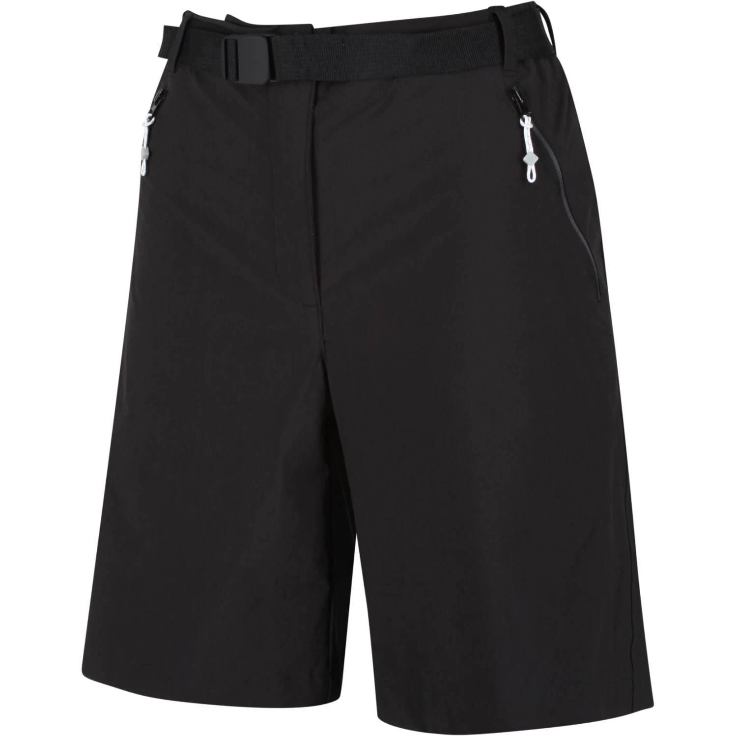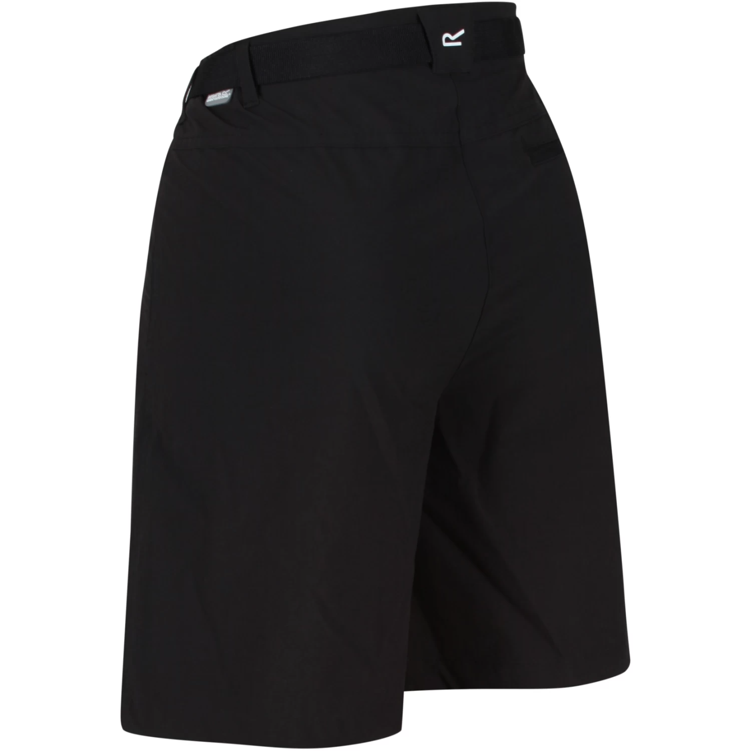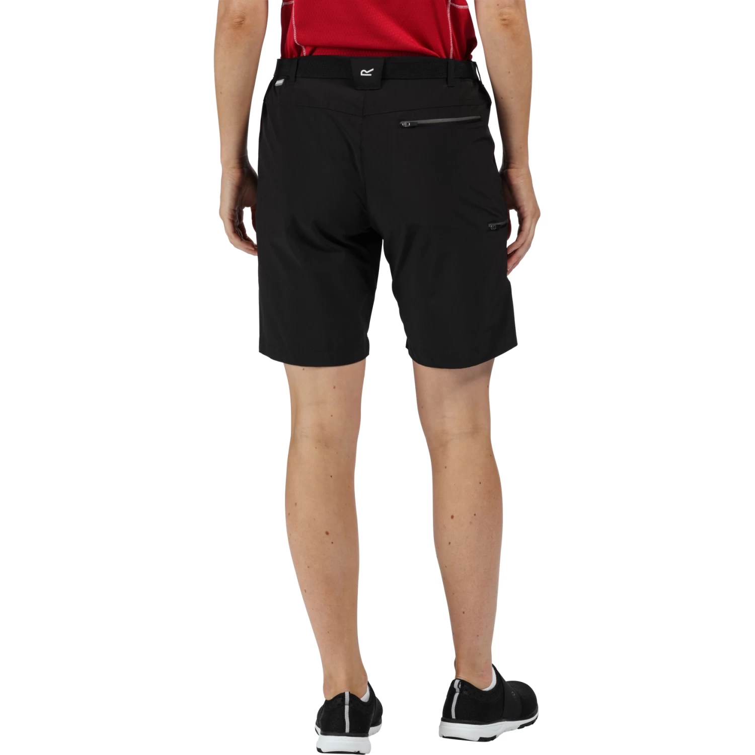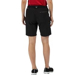 The Xert Stretch Shorts for women – a lightweight and weatherproof hiking shorts with ergonomic fit. For those strenuous days in the mountains. The DWR (Durable Water Repellent)-coated Isoflex high-performance fabric moves with you every step of the way and stands up to the weather to keep you comfortable and dry. Partially elastic waistband with fabric belt provides an even better fit that follows your every move. Zippered front and back pockets allow you to securely stow your necessary adventure gear. Features the Regatta Outdoors print on the left pocket.