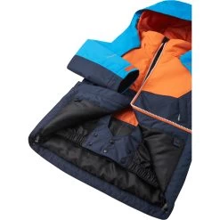 This Reimatec ski jacket contains recycled fibers and is windproof, waterproof and breathable. In addition, all seams have been sealed waterproof. With its lining of smooth, partly recycled polyester, the jacket is easy to put on and take off and still sits comfortably even with warm midlayers underneath. For added protection, the waist, hem and cuffs are adjustable. The snow skirt keeps snow out, but can also be attached to the lining when not in use.