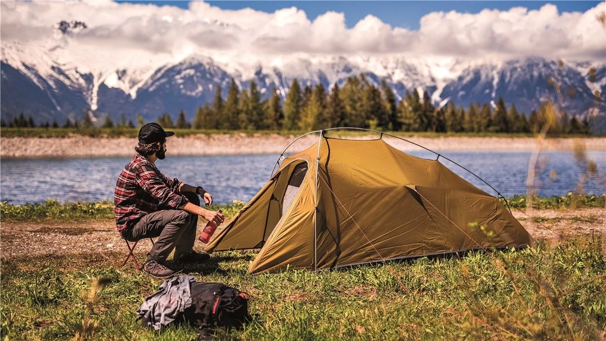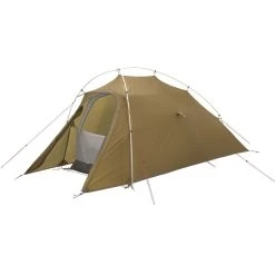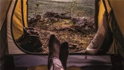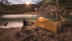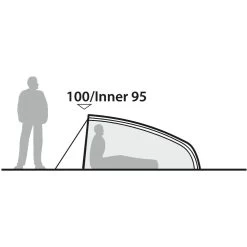 The Elk River 1 sleeps one in a sloping tunnel design that uses a clip-on external single hoop with a ridge pole to create and maintain an aerodynamic shape − the occupant has enough head room to sit in the inner close to its door. Entry to the tent is via a front door that folds to one side. This features a double zip so the door can be cracked open at the top for additional ventilation. The front porch is large enough for backpack and boots.Â