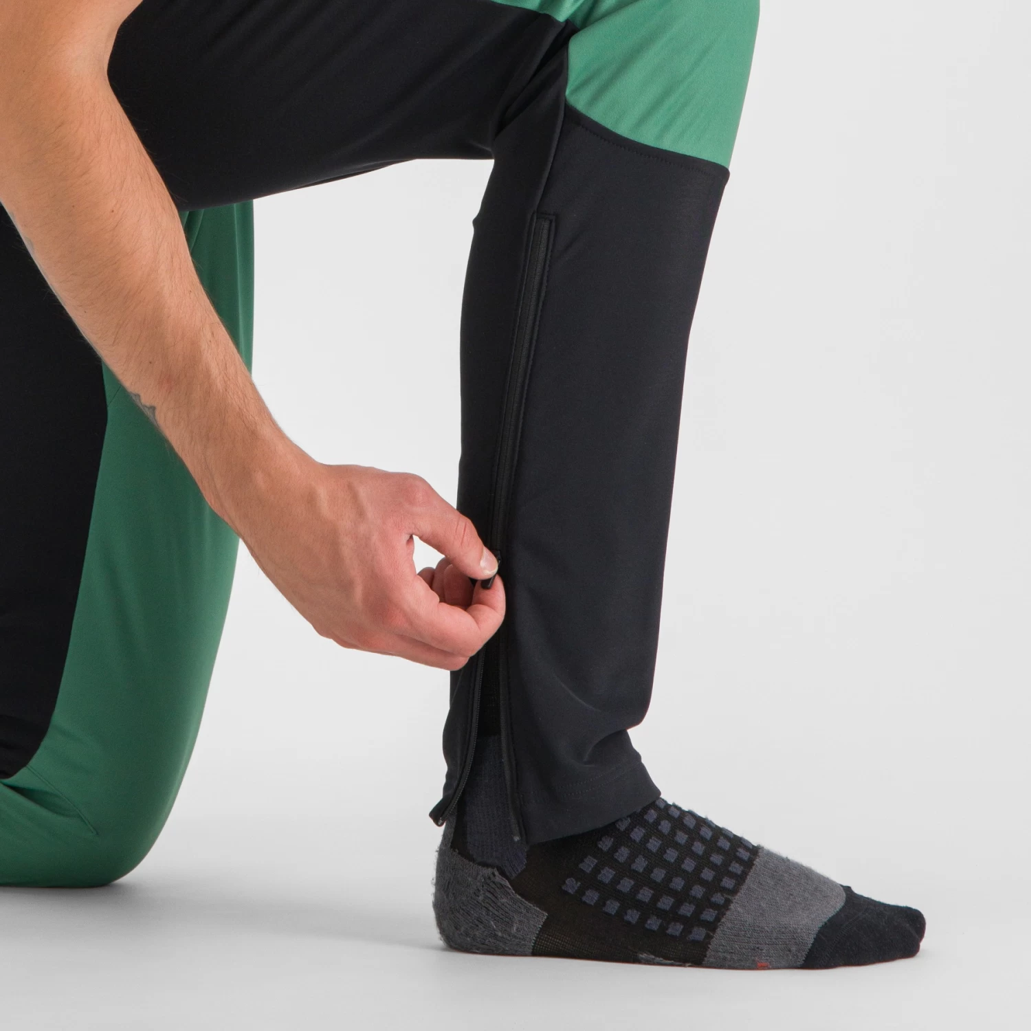 are the lightest pants in the collection. They are suitable for high-intensity training sessions or for wearing in moderate temperatures. The windproof front provides excellent protection from the wind and the rear stretch panels offer freedom of movement and breathability. The side zippers are designed to allow you to take the pants off without having to remove your boots.