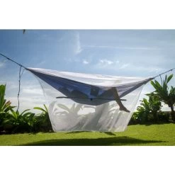 The bug net is made with a double zipper and an extra-fine mesh of 200 openings per cm2 that covers you and your hammock completely, so there is no possible way-in for insects. We have successfully tested this net in areas with a high malaria risk, nevertheless we’d advise to use Permethrin repellent treatment there. This hammock accessory is ideal for travelers who want to venture into the most dangerous corners of the world, and for those hiking and camping in the wilderness: anyone will find happiness with a bugfree sleep…