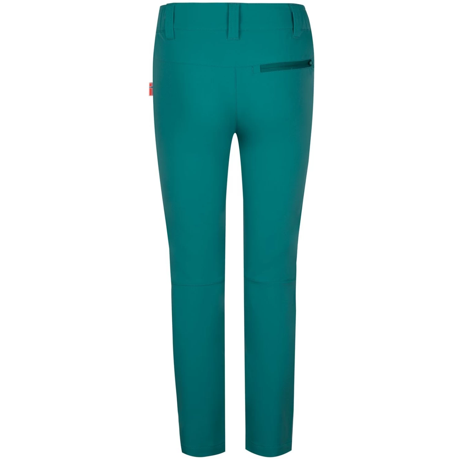 The are softshell pants with reinforced knees. This water-resistant and windproof fabric is slightly flexible and yet very robust. The waistband has elastic inserts and belt loops. The hip pockets and the thigh pocket all have zips and are ideal for stowing small items.