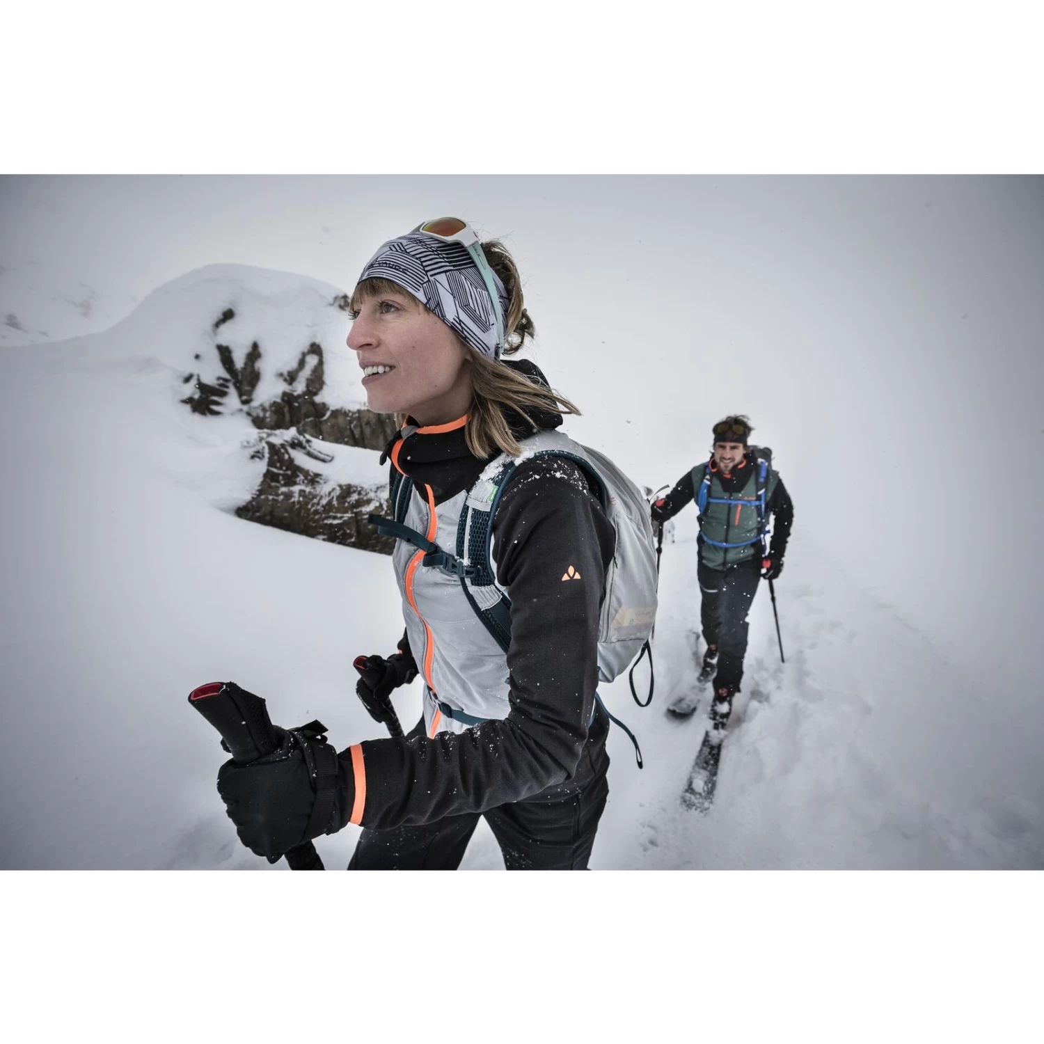 The lightweight, stretchy jacket is made almost entirely from recycled material, saving resources and CO2 emissions. The Valdassa Hybrid Jacket is thus an all-around successful ski touring jacket for sporty women who want to be comfortably dressed and with a good conscience in the snowy mountains. The VAUDE Green Shape label stands for an environmentally friendly, functional product made from sustainable materials.