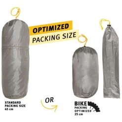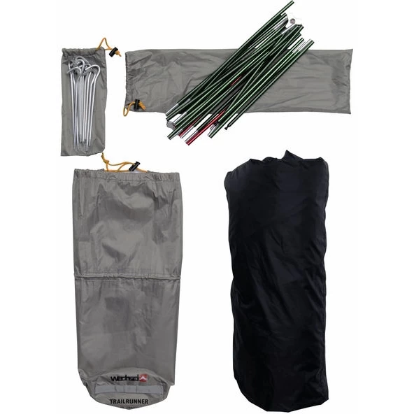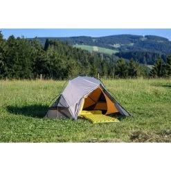 is a hybrid tent for 1.5 people with a vestibule. The design is characterized by an external pole, which speeds up the assembly and disassembly of the tent. The tent is hung on the poles via the clips. The outer and inner tent are already connected to each other. Two aluminum hitching points on the poles ensure high wind stability. The additional Ridge Pole provides sufficient headroom in the inner tent. Mosquito gauze at the head and foot end and in the door provide good ventilation in the tent without unpleasant drafts. The pack size is handy and optimized for BIKE PACKING or other packing options. For 1 to 2 nights, even two people who like each other will find room in the Trailrunner tent.